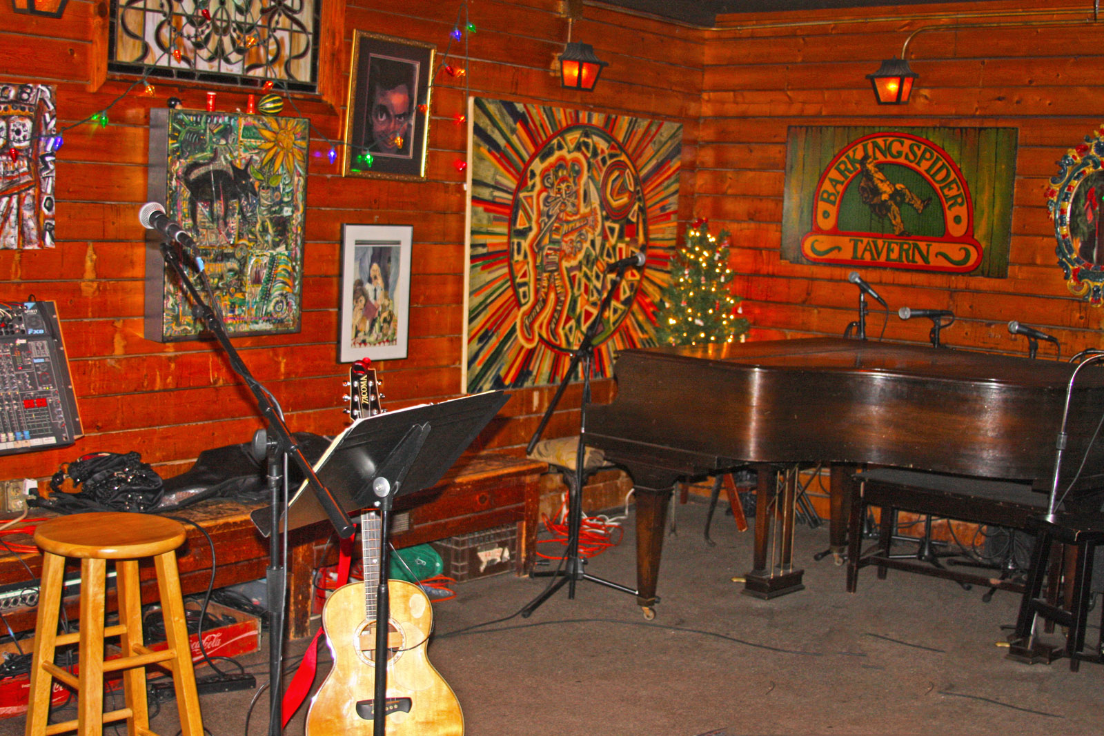 The Barking Spider has its own sound system, which includes the following equipment. You are also welcome to bring your own equipment.